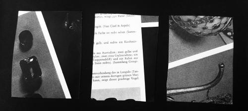 Zurück in der Schule bin ich dann etwas abgedriftet. Ich hab weiter gearbeitet, ohne zu wissen, wohin ich eigentlich steuere. Aber manchmal macht das einfach verdammt grossen Spass! Und wenigstens die letzte Arbeitsstunde in dieser Woche wollte ich Spass haben. Also setzte ich die Ausschnitte falsch ins Layout und schaute, was da passierte. Dann kopierte ich ein Layout, bei dem die Ausschnitte komplett fehlten. Dann vergrösserte und kombinierte ich Ausschnitte. Verkleinerte sie und machte ein repetitives Tapetenmuster daraus.
