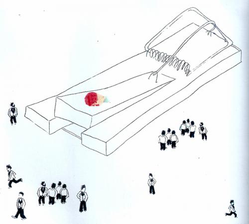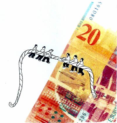 Ich bekam als zweitletzte den Kommentar zu meinem Bildern. Davor hätte ich mich am liebsten unter dem Tisch verkrochen. "Warum hab ich nicht einfach ein paar Jodler und Kühe gezeichnet wie die anderen?", dachte ich in dem Moment. Und dann endlich lösten sich die Sorgen in Rauch auf. Mein Konzept war verständlich, passte offenbar auch zum Artikel und stiess auf ein gutes Echo. Nach all den Selbstzweifeln und auch der Auseinandersetzung mit dem Thema "bleibe ich mir selbst treu oder werde ich zum Auftragsdeppen?" fand die Sache endlich ihr happy End. Offenbar ist es in Ordnung, sich selbst einzubringen - auch wenn der Grad der Meinungsäusserung gut balanciert sein will. Es hat sich gelohnt, dass ich "mein eigenes Ding" durchgezogen und das betont habe, was mir am Text wichtig war. Das wurde auch anerkannt und gleichzeitig glaube ich einen leisen Hinweis vernommen zu haben, dass ich mich handwerklich noch mehr verbessern muss. Das ist okay und ist mir auch bewusst.