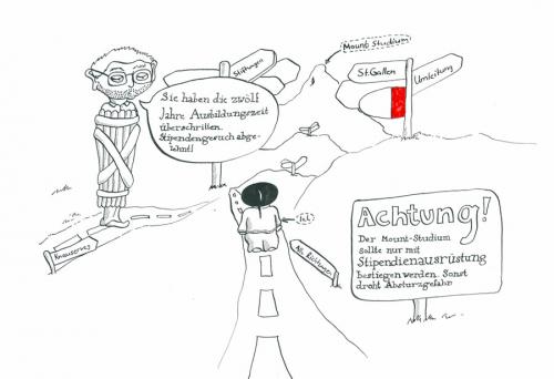 Die privaten Stiftungen sind auch noch ganz nett, aber teilweise etwas... anspruchsvoll. Gewisse verlangen, dass man mindestens Note 5.3 im Studium hat, damit man ein Stipendium kriegt. Und dann muss man noch kommunikativ begabt sein und und und. Nun gut, Versuch macht klug.