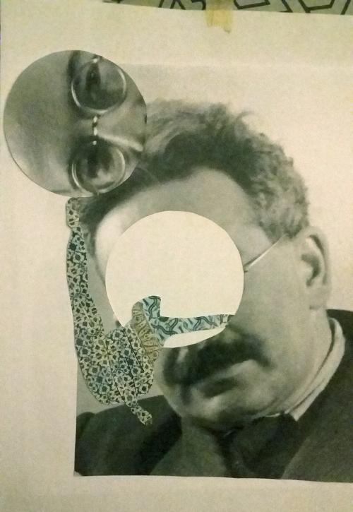 Gleichzeitig fehlen mir ein wenig die lebensphilosophischen oder psychologischen Themen, mit denen ich mich sonst gerne beschäftige. Und Kinder/Jugendliche werden später wohl eher weniger meine Zielgruppe sein. Zwischendurch erlaube ich mir den einen oder anderen spassigen Seitensprung, indem ich Walter Benjamins Kopf als Ball verwende, mit dem der Jongleur seine Kunststücke vollführt. Zum anderen konzentriere ich mich auf das, was mir Spass macht - wie gesagt die Collage, die Ornamente, eine gewisse Abstraktion der Figuren, die mich sehr reizt, ein gewisses grafisches Vorgehen.