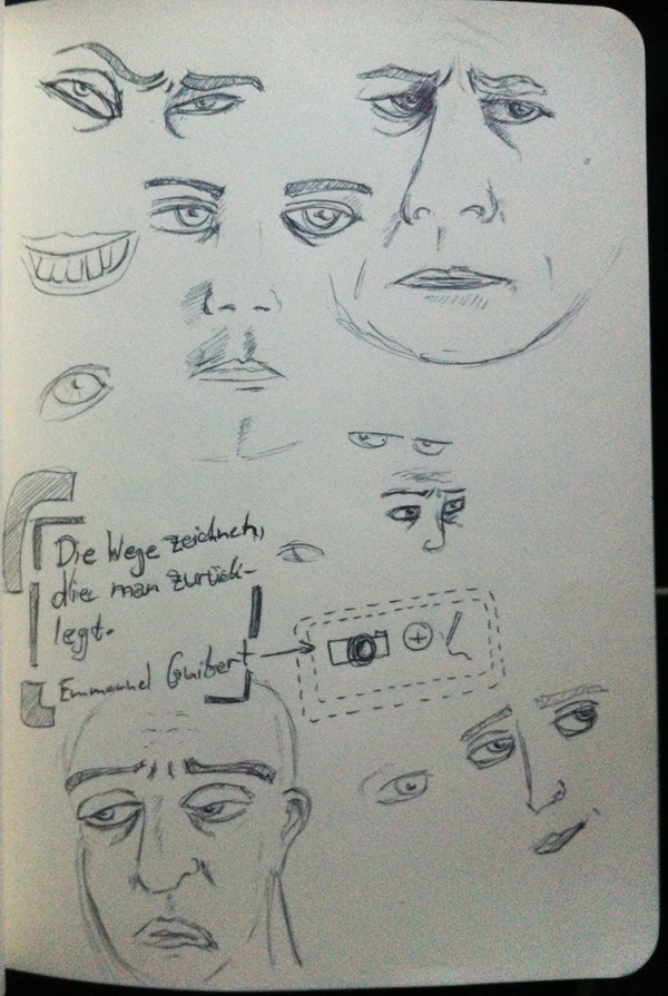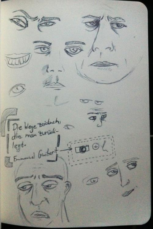 Eine Mitstudentin kann umwerfend zeichnen. Ich hab mir das eine oder andere von ihr abgeguckt und angefangen, Gesichtsausdrücke zu üben (das kann man sehr gut auch bei einem abendlichen Krimi - einfach zwischendurch anhalten und den Gesichtsausdruck skizzieren).